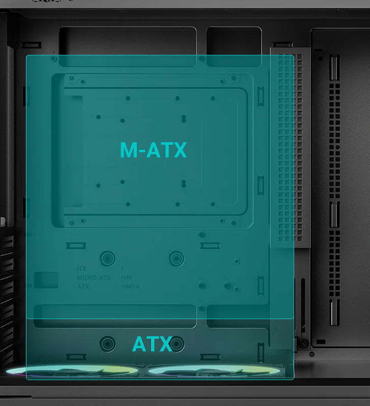 Supports reverse connector ATX and M-ATX motherboards for modern layouts.
