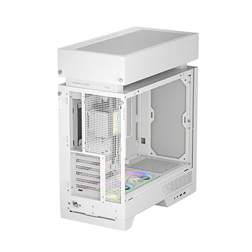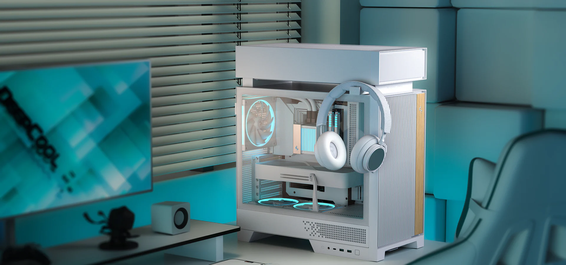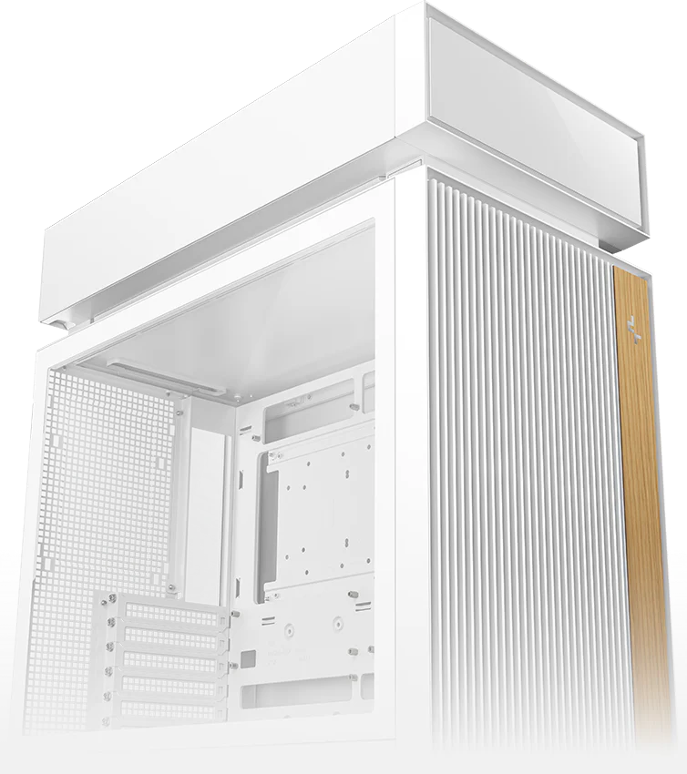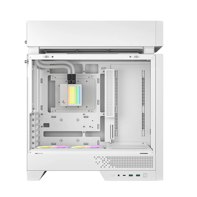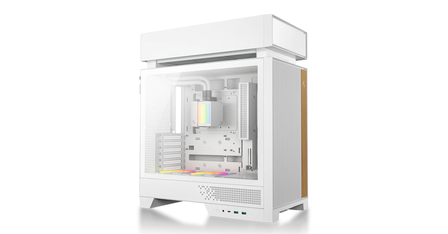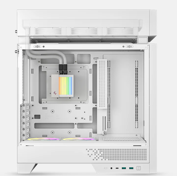 The PSU mounted horizontally at the front, with cable connections face the back of the motherboard.