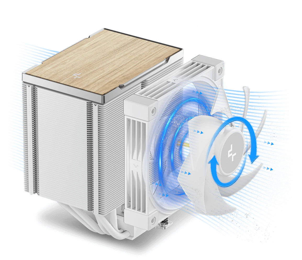 Equipped with high-quality hydraulic bearing and a three-phase, six-slot, four-pole motor, the AK400 G2 WH's fan operates smoothly and quietly.