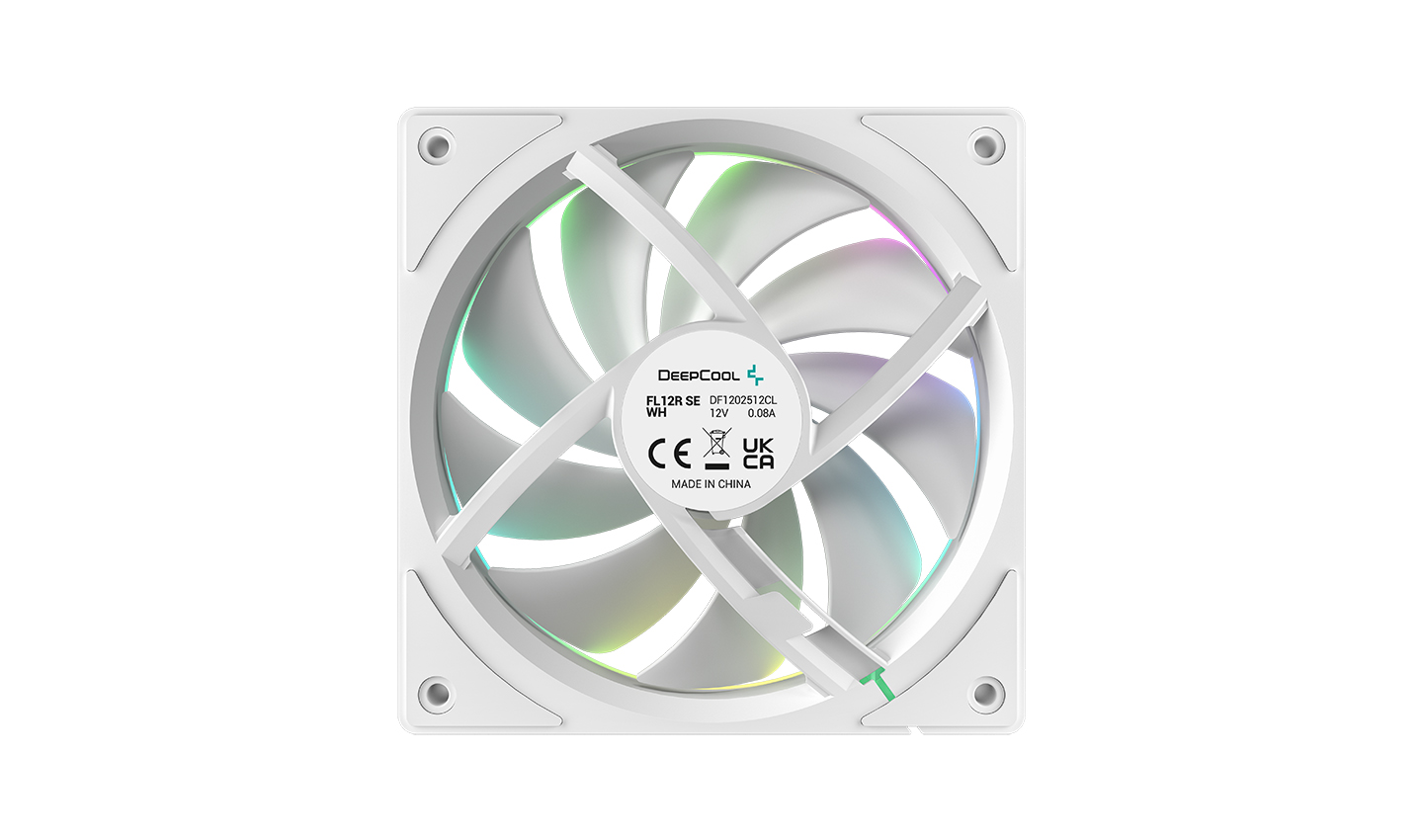 The DeepCool FL12R SE WH features a reversed fan blade design, delivering stunning lighting effects with 20 individually addressable RGB LEDs, combining vibrant colors with exceptional cooling performance.