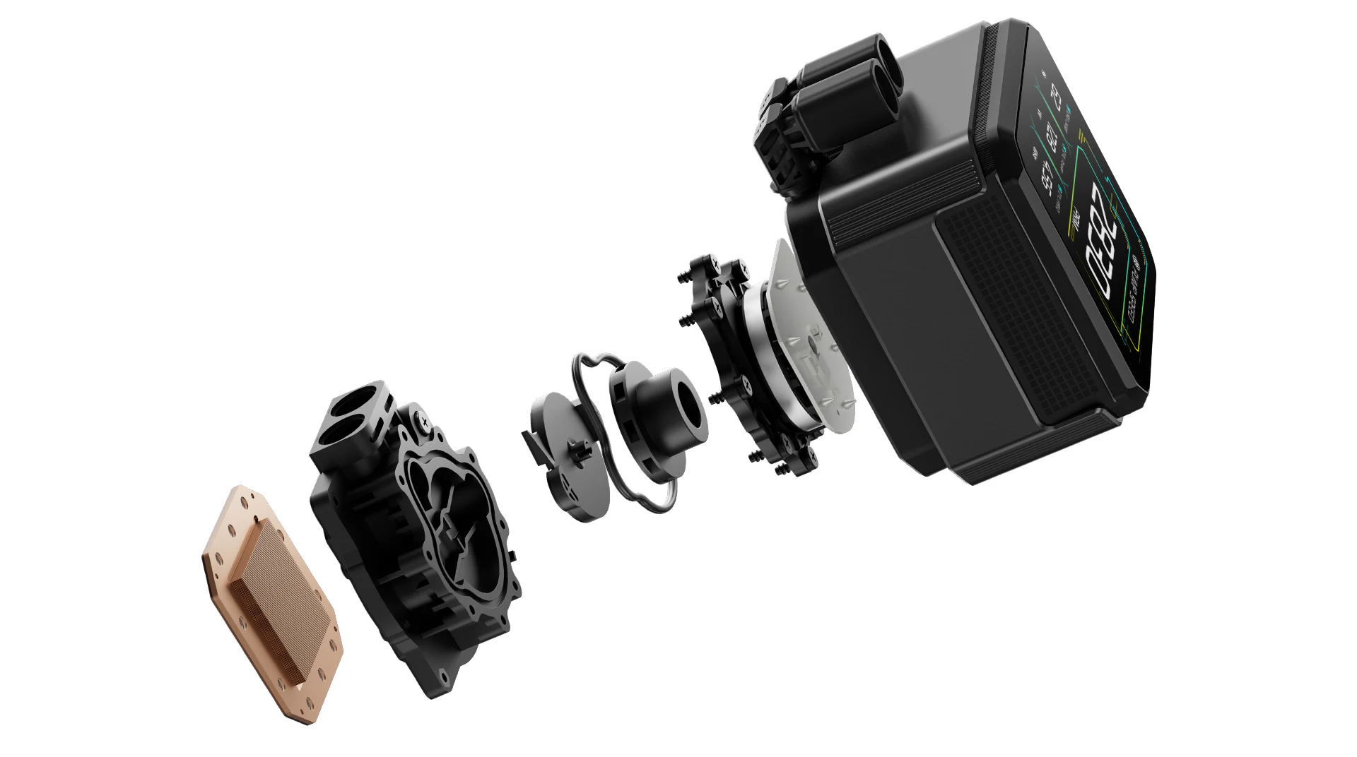 The SPARTACUS 360 is Powered by a refined 6th-generation pump, driven by a 3-phase, 6-slot, 4-pole motor with FOC control for stable and efficient operation across its 2,500-3,400 RPM range. The improved copper base and microfin design enhance heat transfer, enabling up to 320W of heat dissipation with low noise levels.