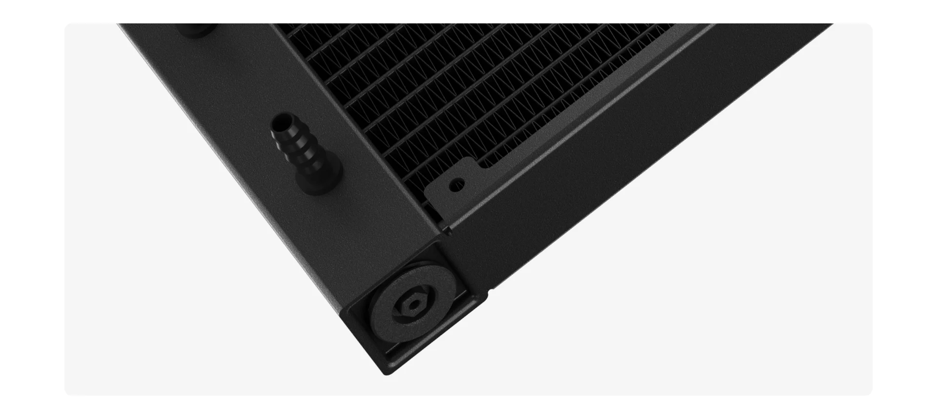 The radiator is equipped with three 120mm fans featuring semi-integral blade structure, which closes the blade-frame gap to reduce noise and increase static pressure. It also helps the fans maintain stability at higher speeds, ensuring consistent airflow through the radiator.