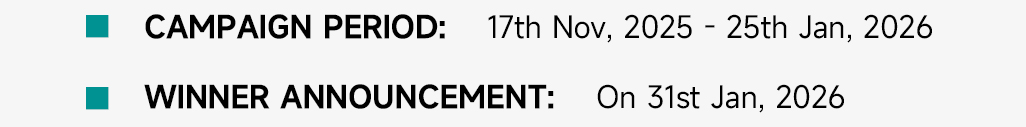 2. Campaign Period: From 12:00 AM GMT on November 17, 2025, to 11:59 PM GMT on January 25, 2026. The entry submission period ends on 11:59 PM GMT, January 25, 2026.