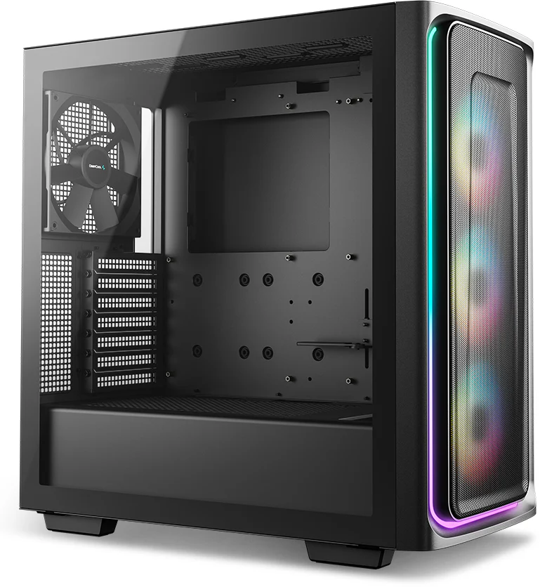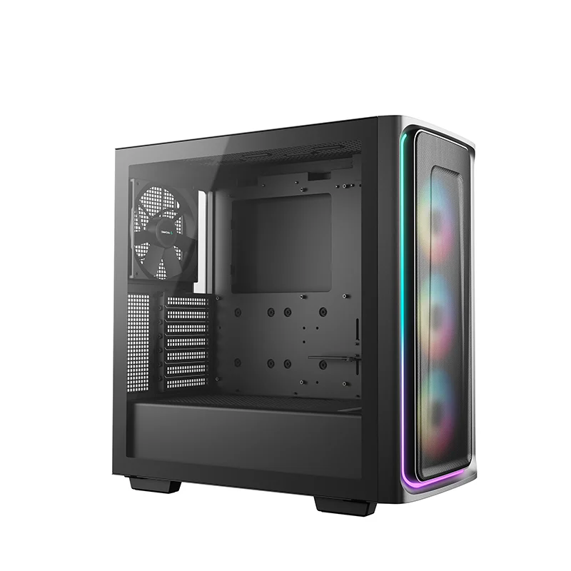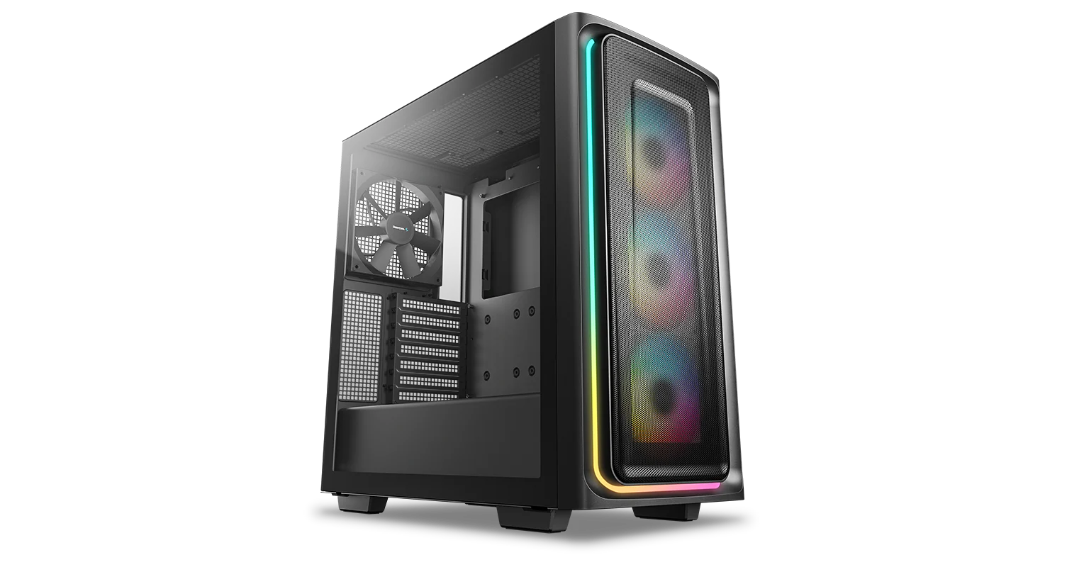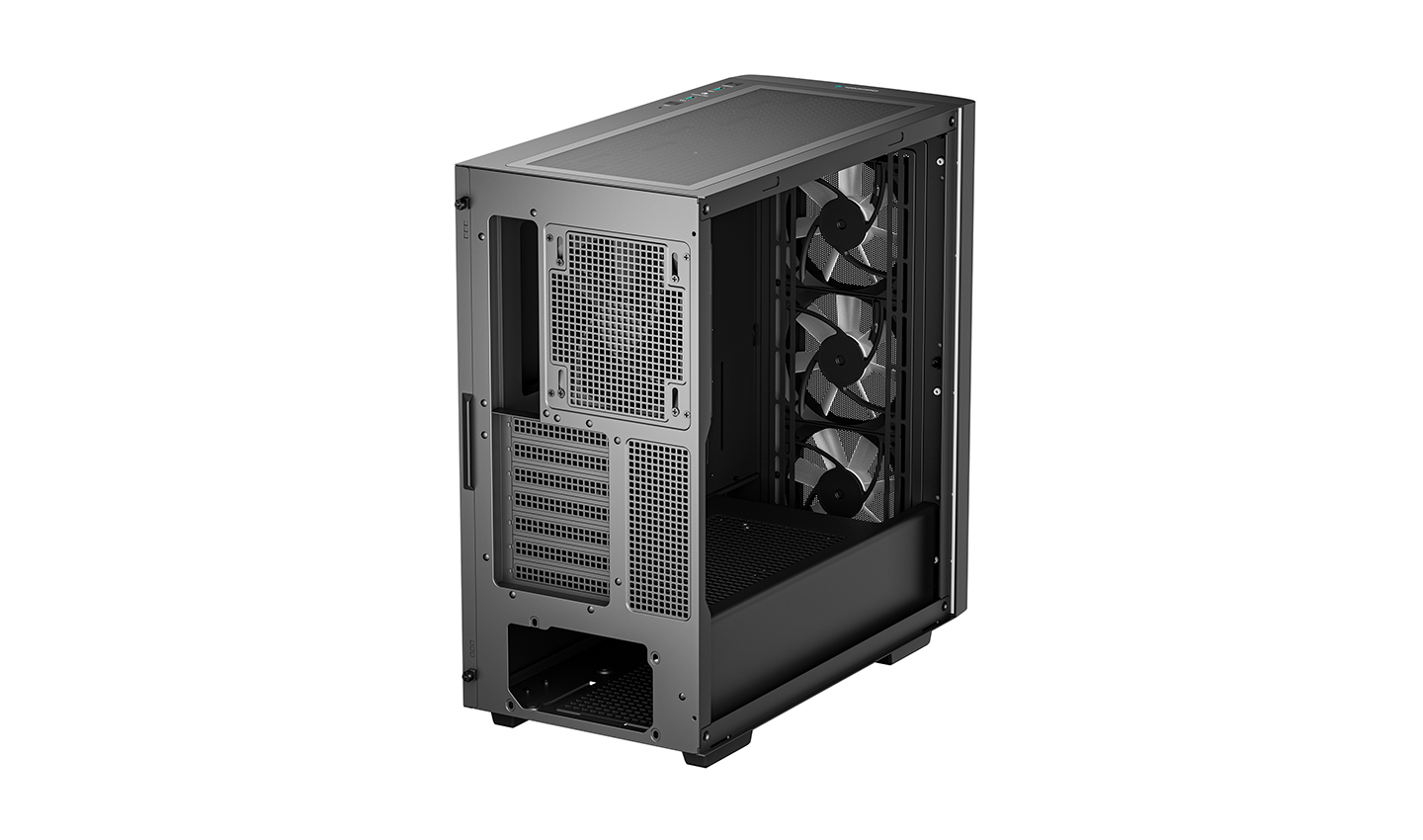 The DeepCool CG540 MESH Mid-Tower Case displays a striking tempered glass panel and generous cooling capacity in an updated modern design that makes system building a breeze with four pre-installed fans.