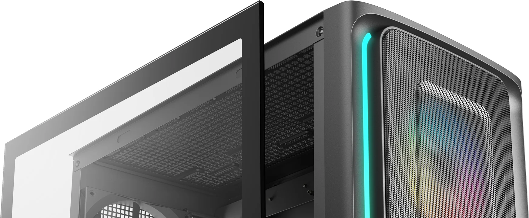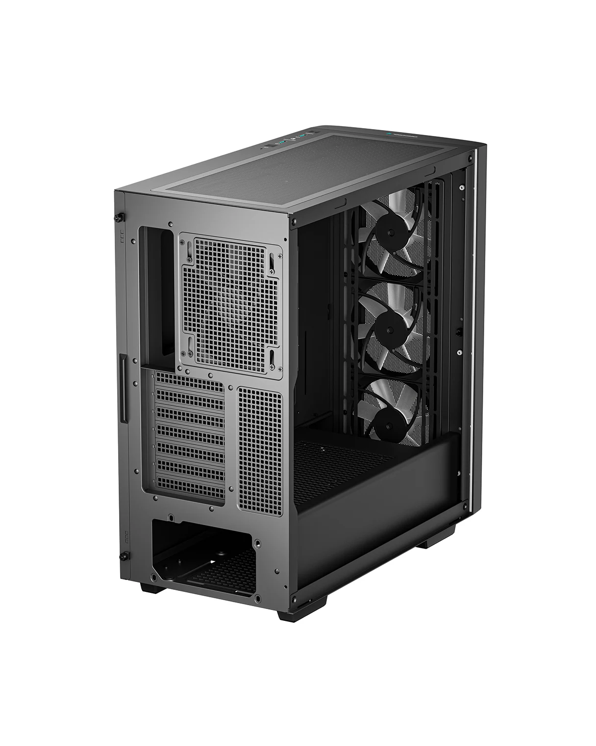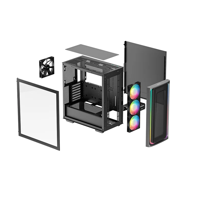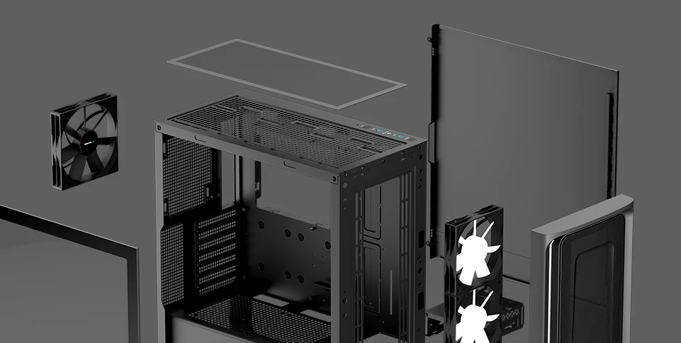 The DeepCool CG540 MESH Mid-Tower Case displays a striking tempered glass panel and generous cooling capacity in an updated modern design that makes system building a breeze with four pre-installed fans.
