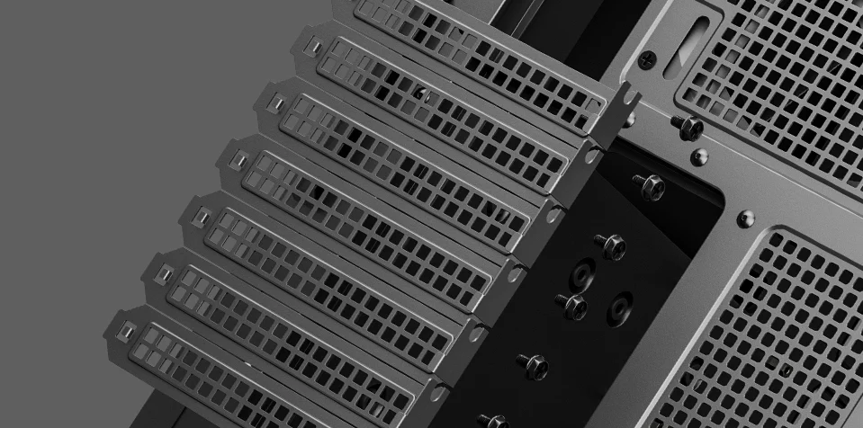 Install up to 3x 2.5” SSDs directly on the backplate and 2x 3.5” HDDs underneath the shroud for ample storage discreetly tucked away.