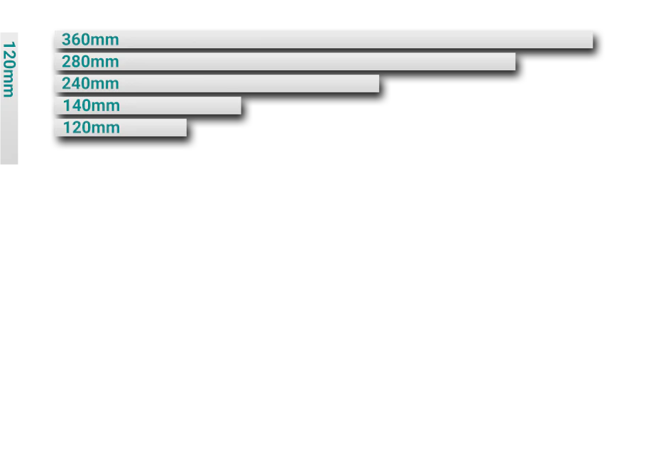 Front: NA Top:120/140/240/280/360mm Bottom: NA Rear:120mm