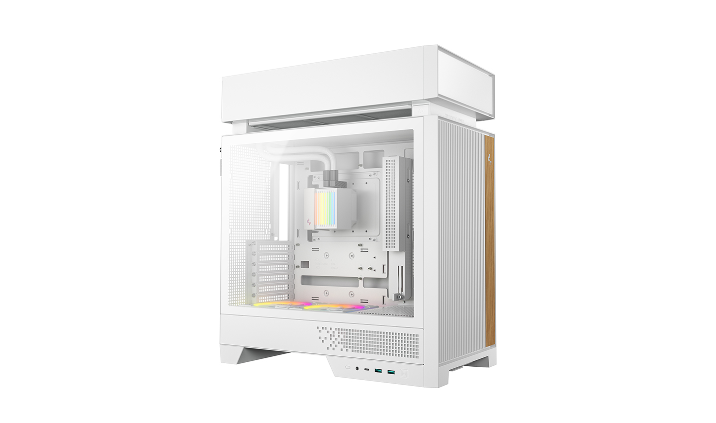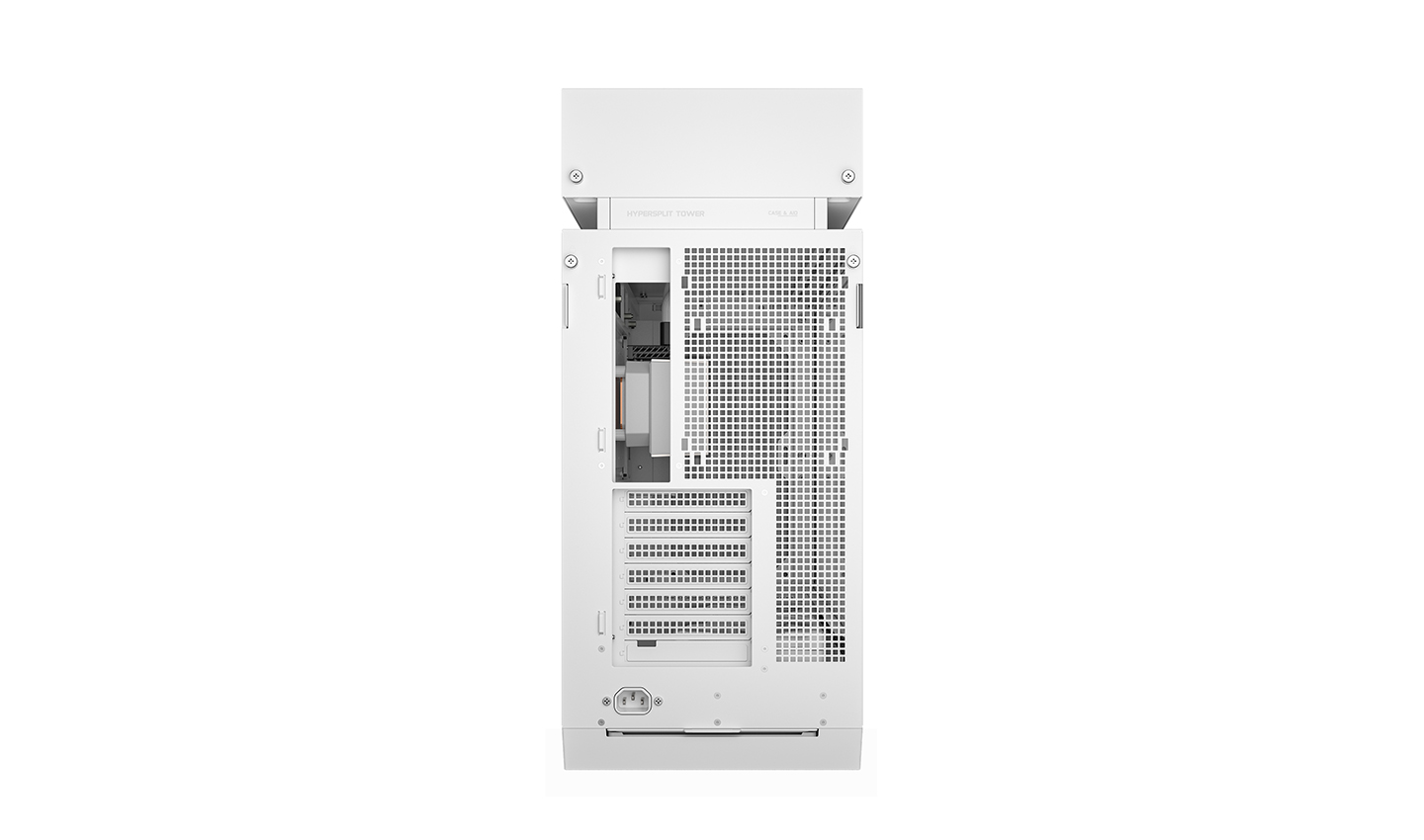 The PSU mounted horizontally at the front, with cable connections face the back of the motherboard.