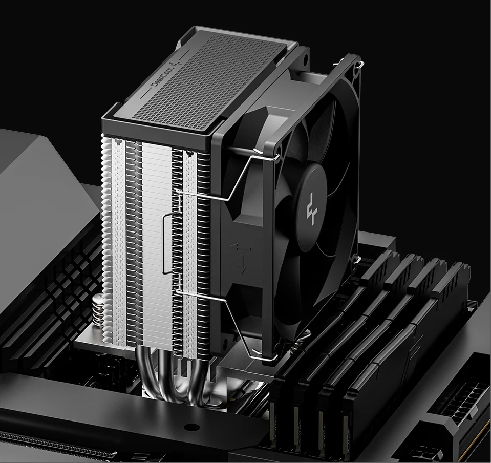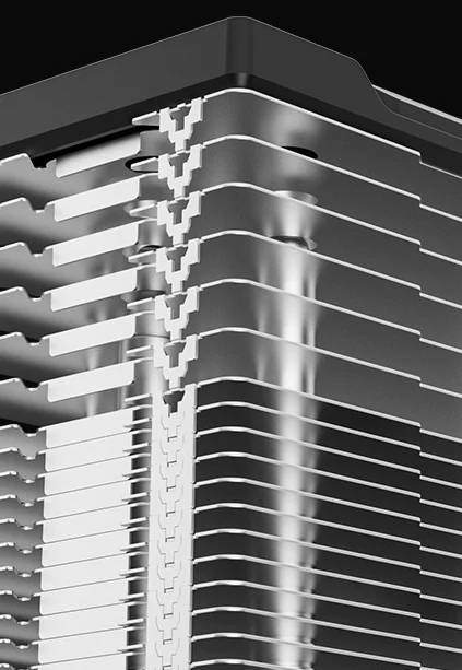 The AG300 G2 retains the signature matrix fin stack style while introducing a refined top-cover decoration for premium presence. It carries over the trusted three heat-pipe single-tower architecture and replaces RGB lighting with minimalist design for a sleek and serious look.