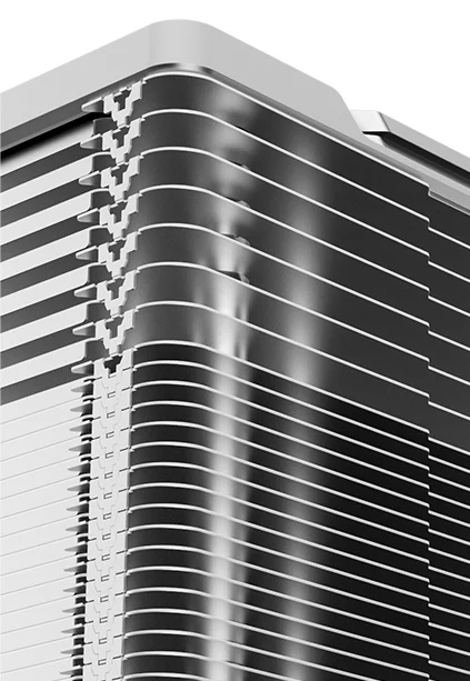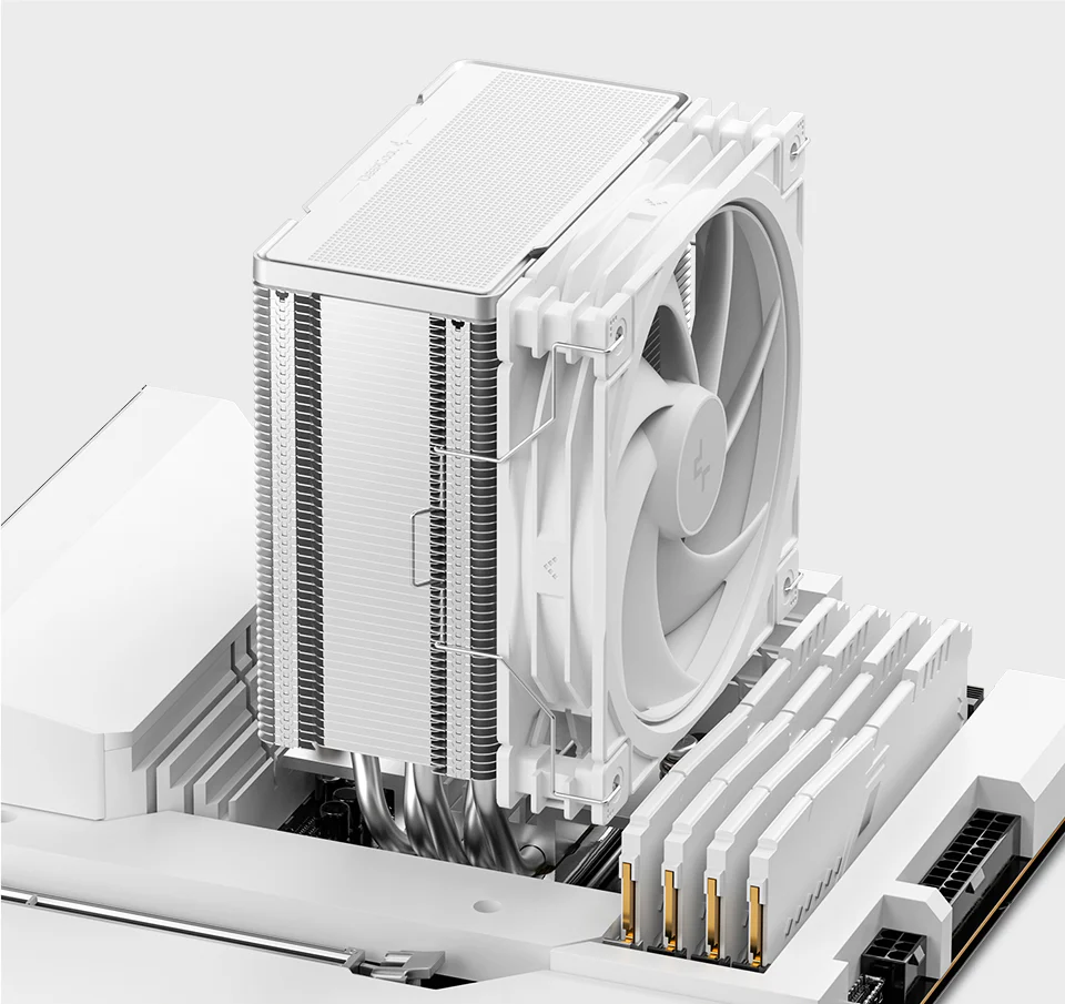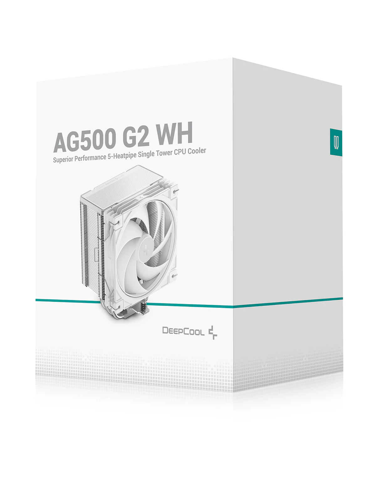 The AG500 G2 WH retains the signature matrix fin stack style while introducing a refined top-cover decoration for premium presence. It carries over the trusted five heat-pipe single-tower architecture and replaces RGB lighting with minimalist design for a sleek and serious look.