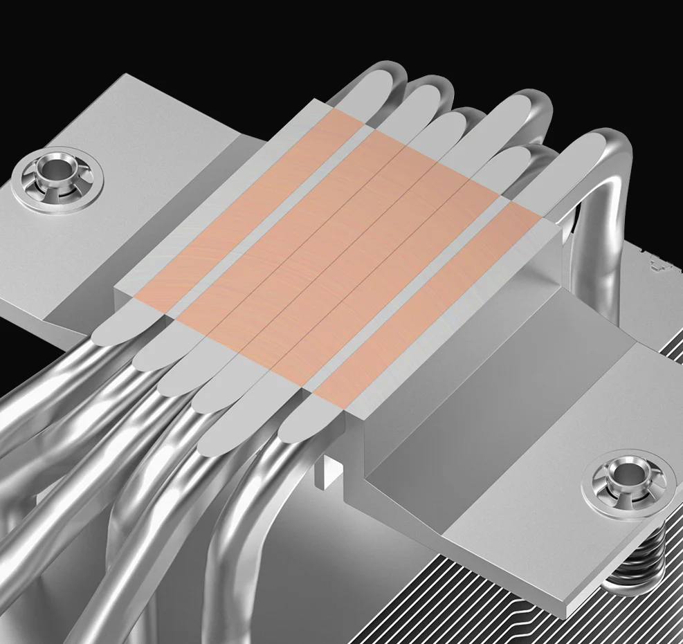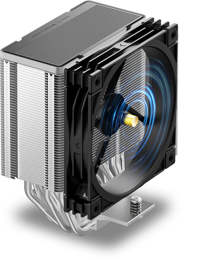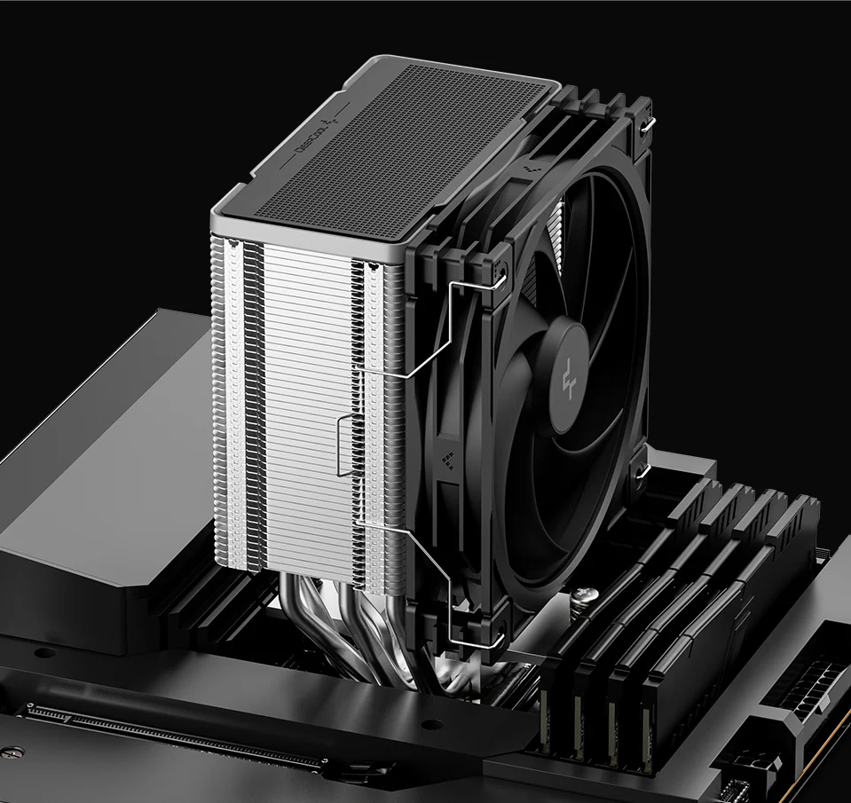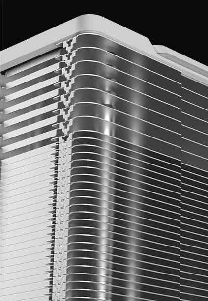 The AG600 retains the signature matrix fin stack style while introducing a refined top-cover decoration for premium presence. It carries over the trusted six heat-pipe single-tower architecture and replaces RGB lighting with minimalist design for a sleek and serious look.