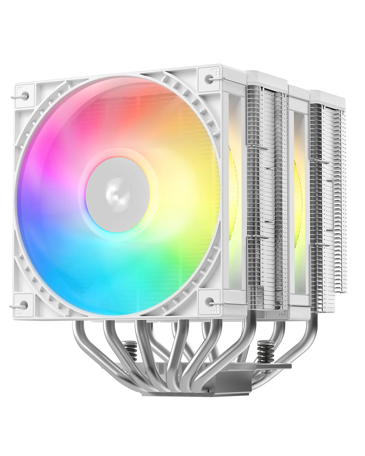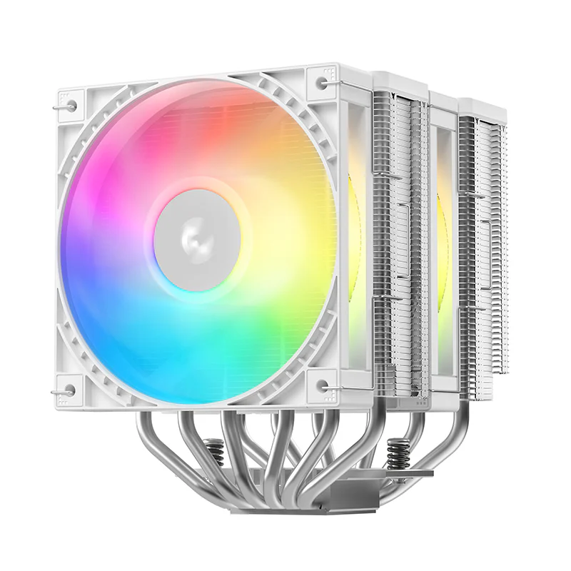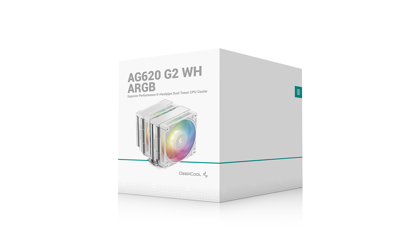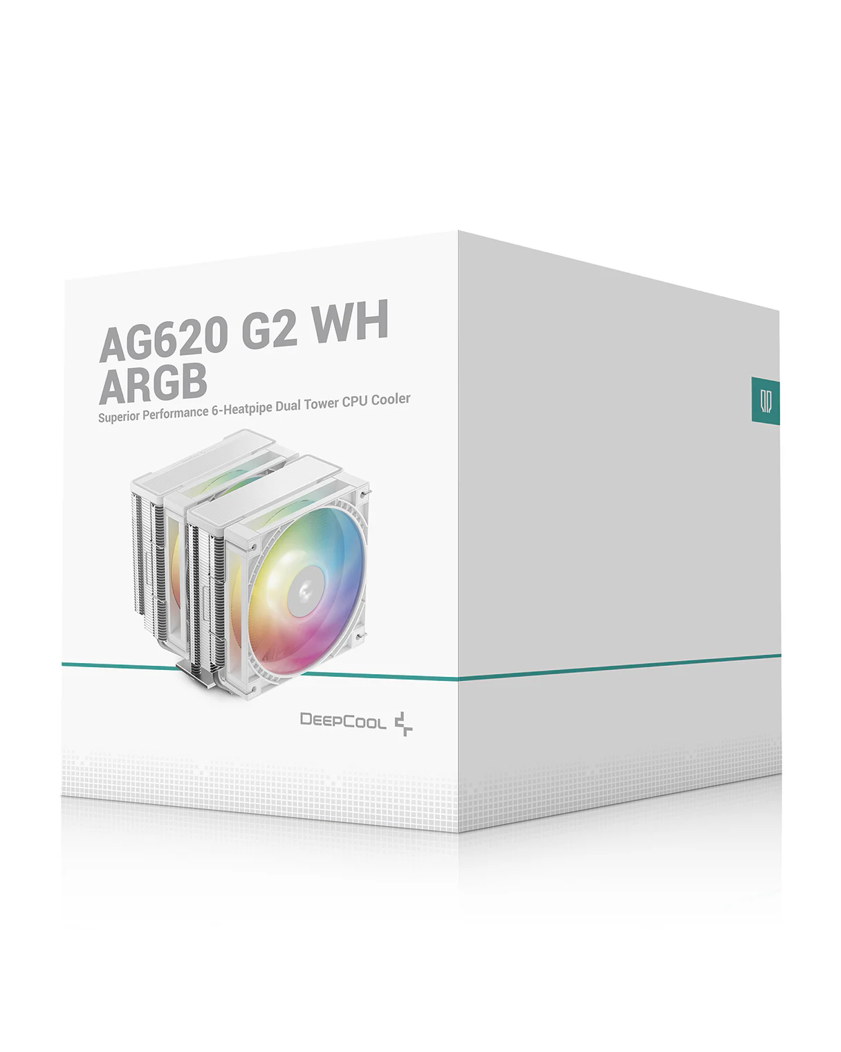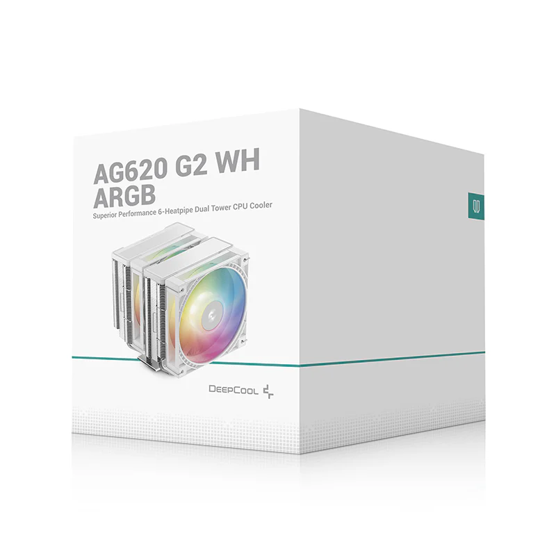 The AG620 G2 WH ARGB raises the bar for dual-tower air cooling with a second-generation upgrade that delivers enhanced performance and a bold new look. Featuring six heat pipes embedded in a dense dual-tower heatsink and paired with two finely tuned 120mm ARGB PWM fans for seriously powerful airflow and thermal transfer.