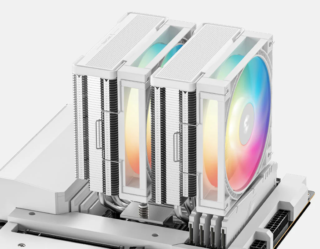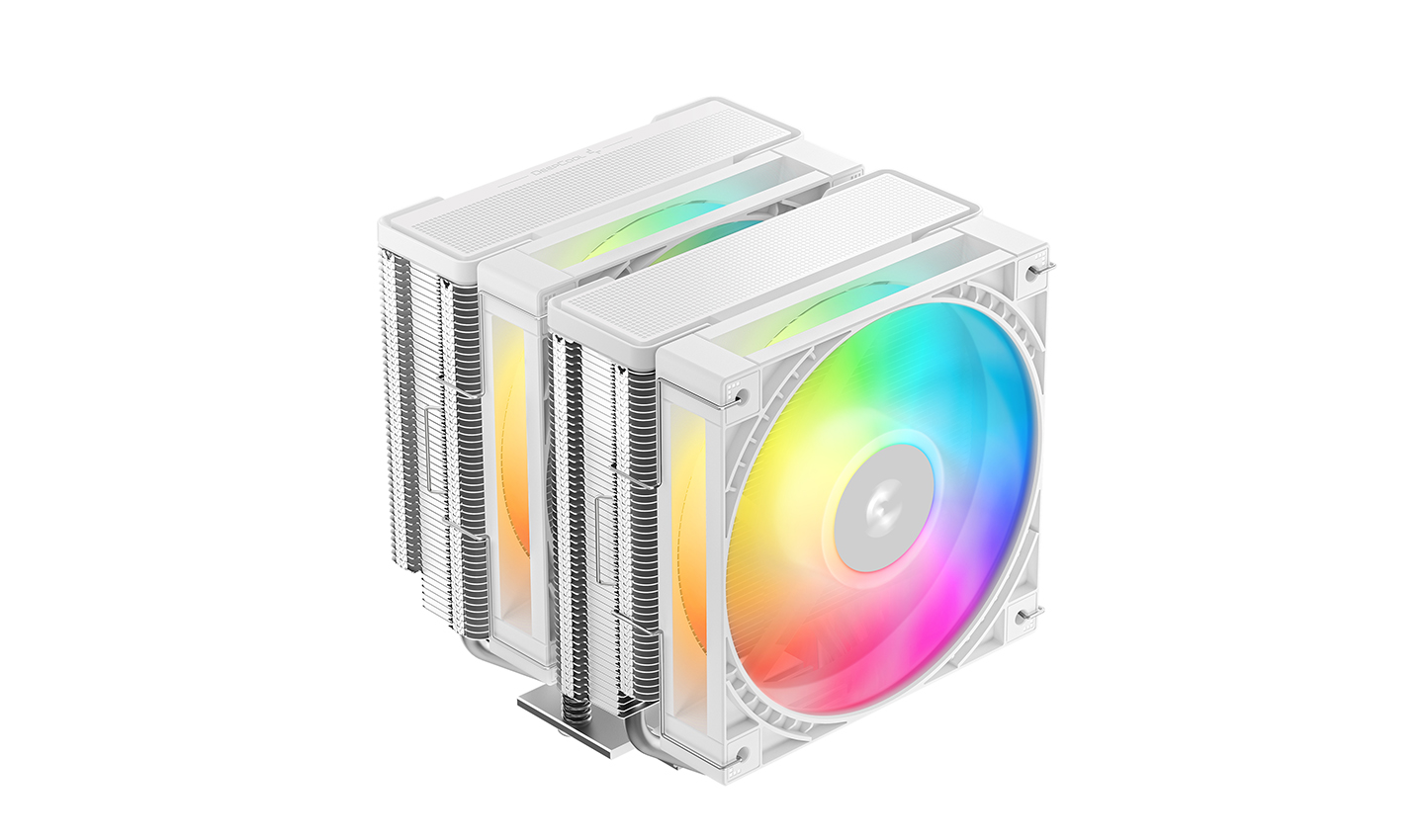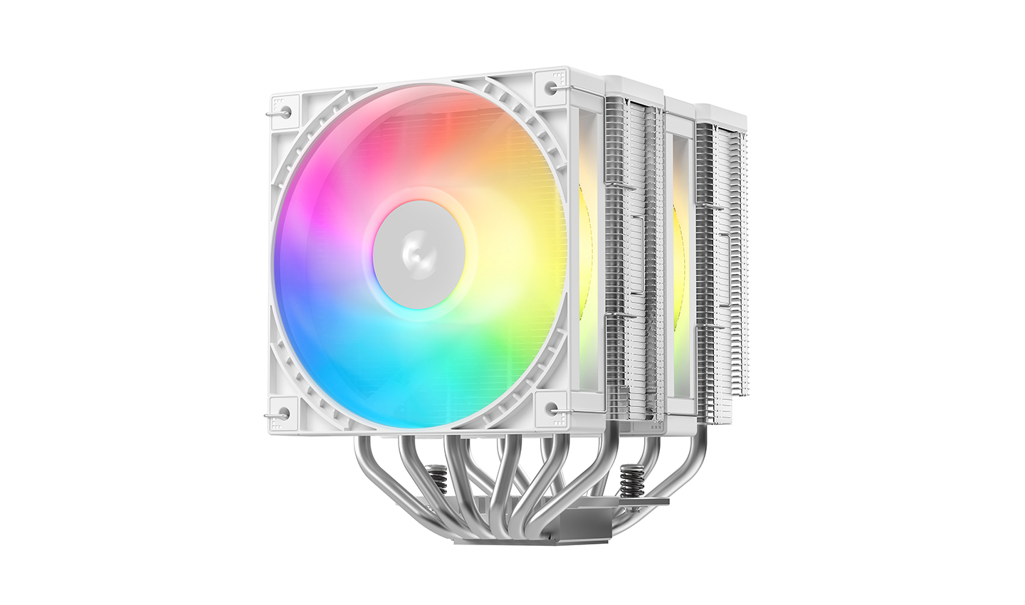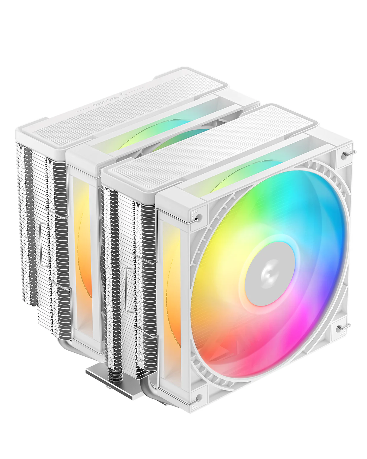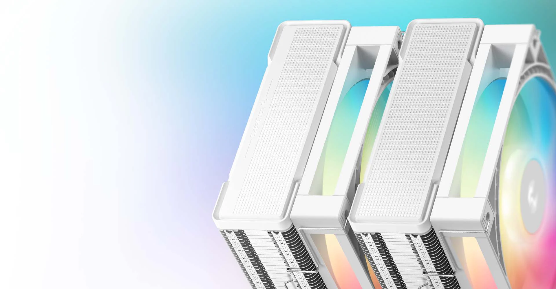 The AG620 G2 WH ARGB raises the bar for dual-tower air cooling with a second-generation upgrade that delivers enhanced performance and a bold new look. Featuring six heat pipes embedded in a dense dual-tower heatsink and paired with two finely tuned 120mm ARGB PWM fans for seriously powerful airflow and thermal transfer.