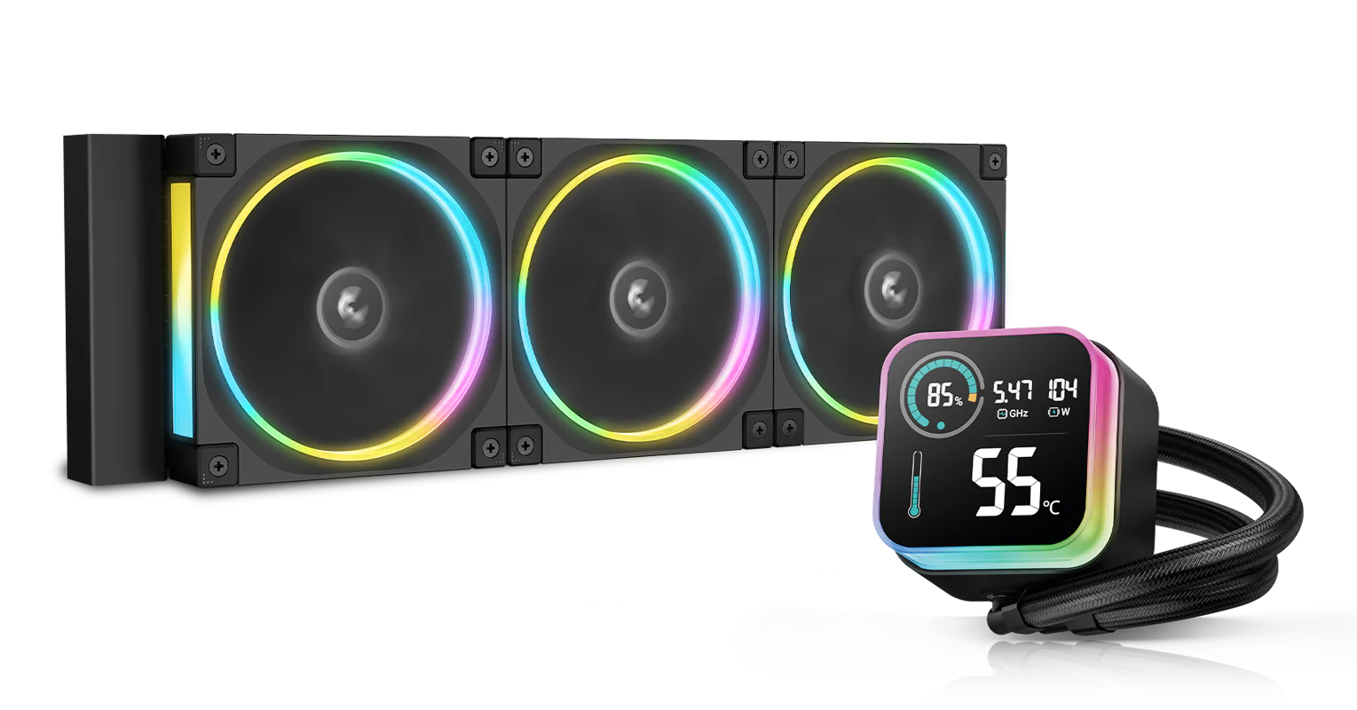 The LQ360 ULTRA ARGB brings meaningful upgrades in cooling efficiency and visual polish with a 6th-gen pump and FL12 fans, while retaining the familiar LQ design with its ARGB halo magnetic pump block and segmented LCD screen.
